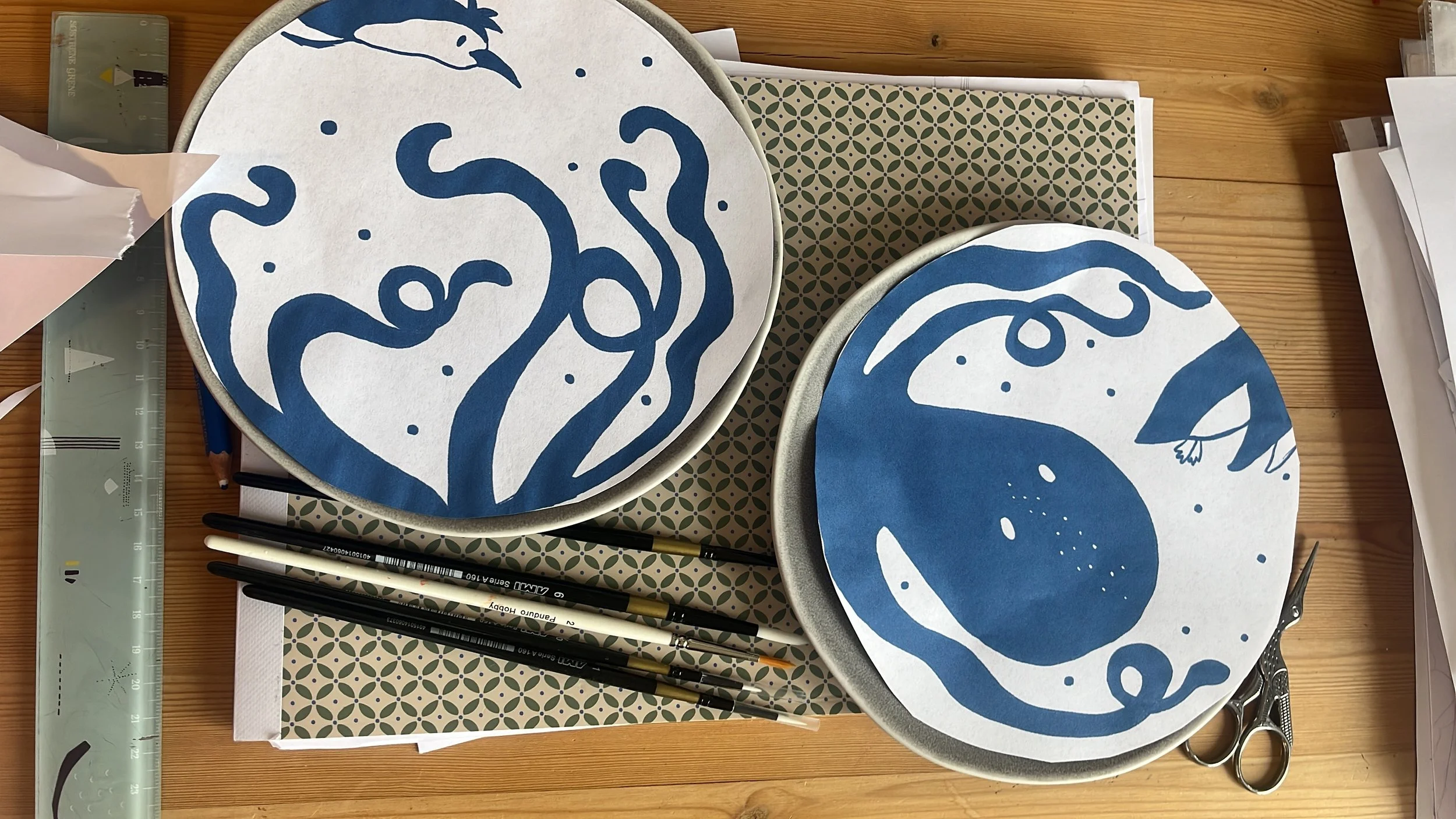 My creativity has been overflowing and as a gift for friend’s wedding I decided to paint a plate with their spirit animals: Octopus and Penguin. It’s not the most original design but I was happy with my best not-too-childish motif. I forgot to take a good photo, so here is the process and tiny photo from distance. I used a pencil to trace, porcelain pen to outline and porcelain PEBEO 150 ink with tiny brushes. Let it dry for 48 hours. Got approval from the couple. Baked 30min. And shipped! They seem happy ;)